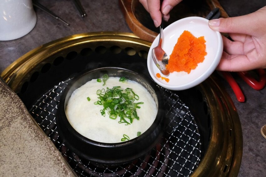 ▼在桌邊料理製作的韓式魚卵蒸蛋,加入滿滿的爆量魚卵及蔥花,吃起來好嫩好香,充滿著高湯和海鮮的鮮香十分涮嘴。