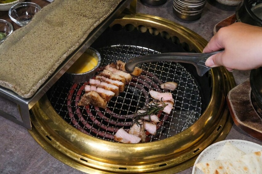 ▼【熟菜豚屋 熟成豚X韓國創作料理】提供貼心的「桌邊代烤」服務,由經驗豐富的服務人員協助,確保每一片肉都是烤到最佳狀態,口感和口味都是最極致的美味。