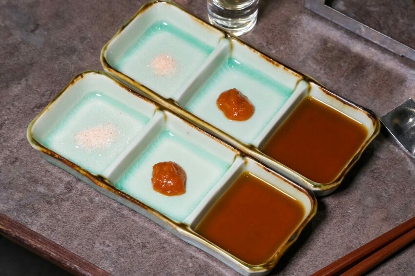 ▼醬料每人會提供一份,可以免費無限續加,有韓式味噌醬、特製桔醋醬、天然鹽。