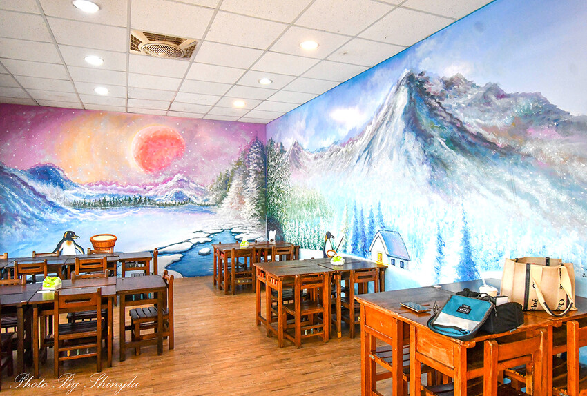內用空間超級大,選用國小生的課桌椅,再搭配鮮豔的彩色塗鴉牆,用餐氛圍令人感到輕鬆