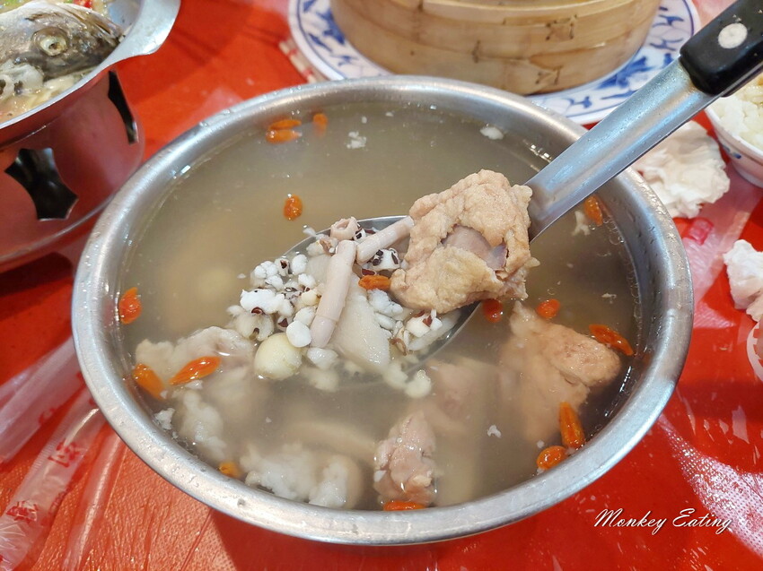 滿滿薏仁、排骨的四神湯,湯頭甘甜料多實在,10人合菜這樣下來我覺得很划算,也吃得非常飽足。