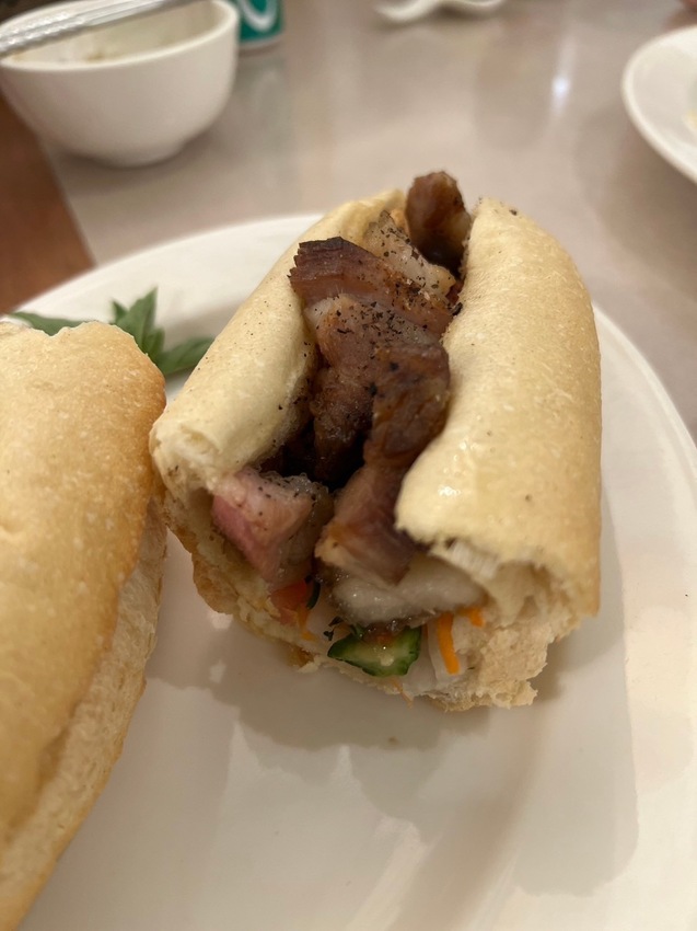 除了五花肉還有清爽的小菜夾在麵包裡頭,奇妙的搭配胃又騰空出了一個空間,法國麵包還越嚼越香~
