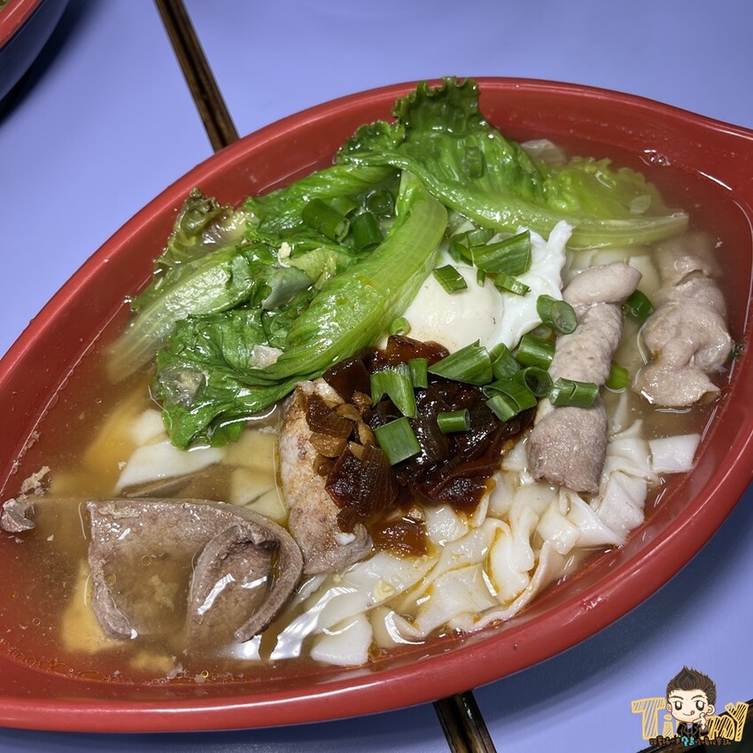 這是不辣的綜合米干(80元),我們選的是切粉,有豬肝、肉片、半熟蛋和青菜等配料。