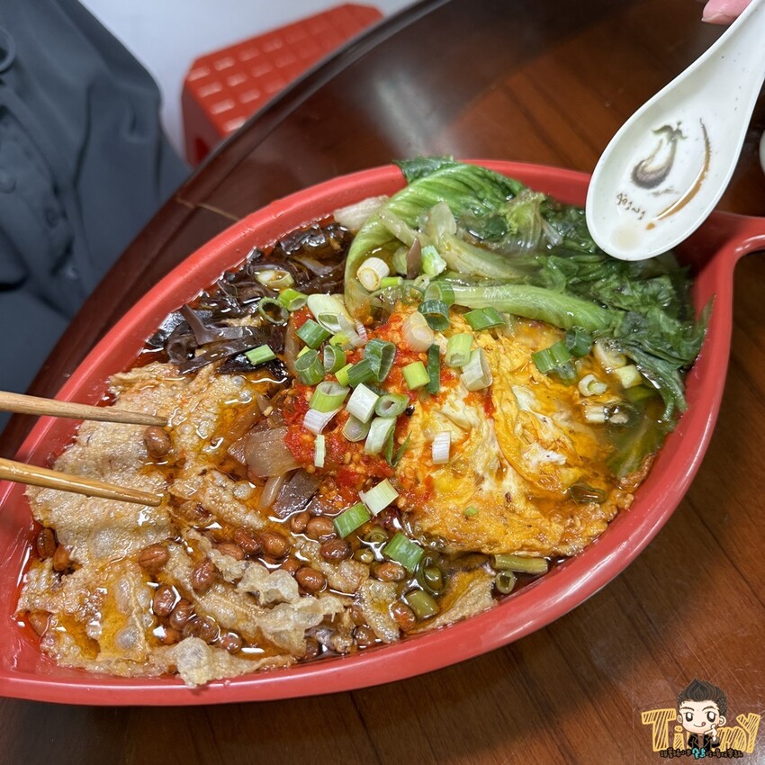 湯頭加入泡椒(酸醃的辣椒),所以特別酸辣開胃。
