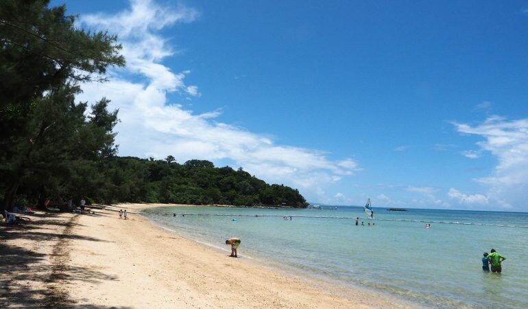 石垣島旅遊的好去處「底地海灘」位在石垣國立公園內,由於海灘較淺,所以一年之間都不會有太大的波浪。因此在當地被視為是石垣島親子週末消暑的熱門景點!尤其是那隨著一天潮汐和日出日落而千變萬化的景色,可以讓人看著發呆一整天都不會膩。