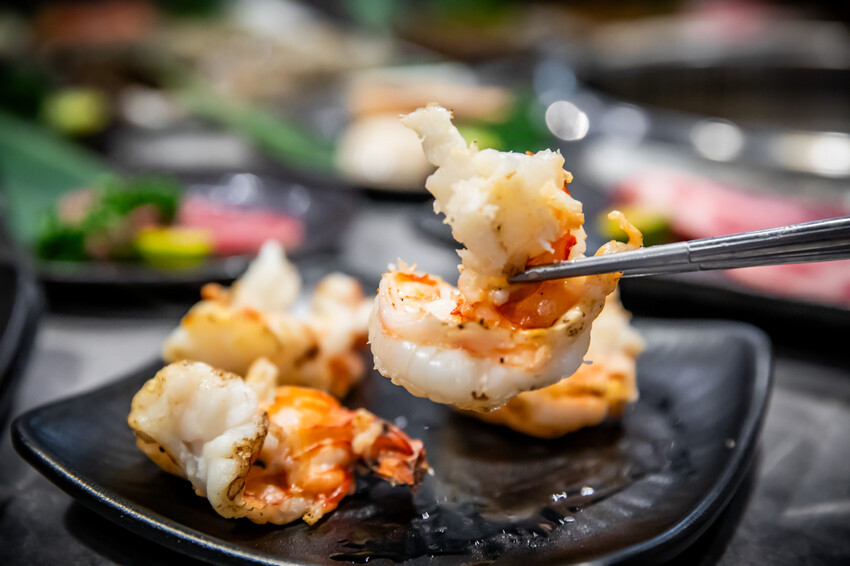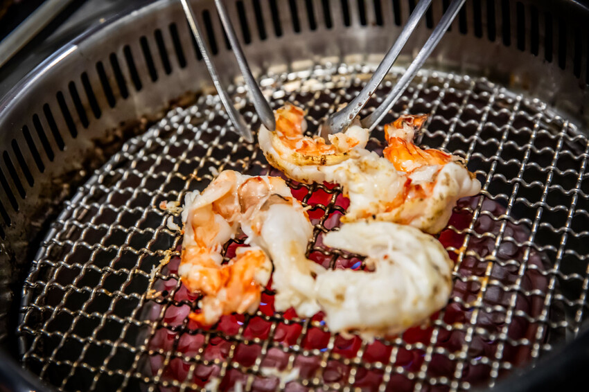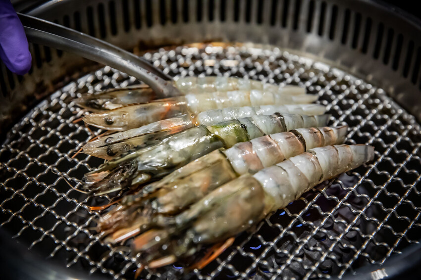 海大蝦、海虎蝦可以請店員幫你去殼,去完殼再烤比較方便,海大蝦、海虎蝦其實還蠻好吃的,但在手臂蝦的壓制下,對比起來吃手臂蝦比較爽,但也很容易吃飽就是了