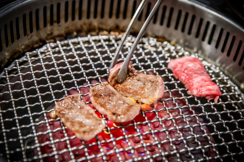 烤日本A5和牛最好兩~三片的烤,這樣比較好顧,烤好一面再翻過來烤個兩面,這樣吃起來肉質鮮嫩,口感鮮甜香氣十足,日本A5雪花(薄切)的油脂入口即化,非常厲害!