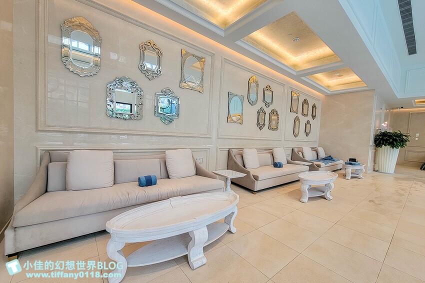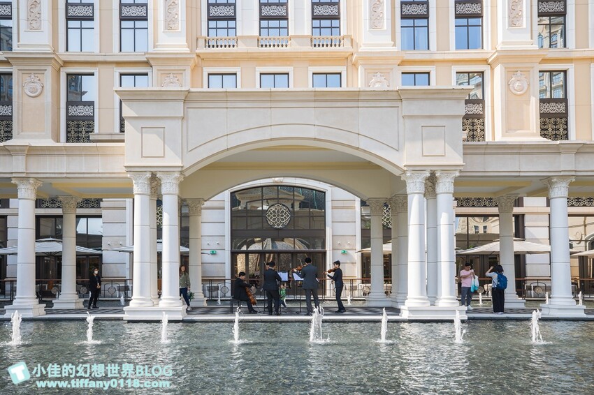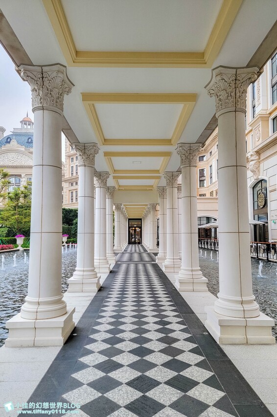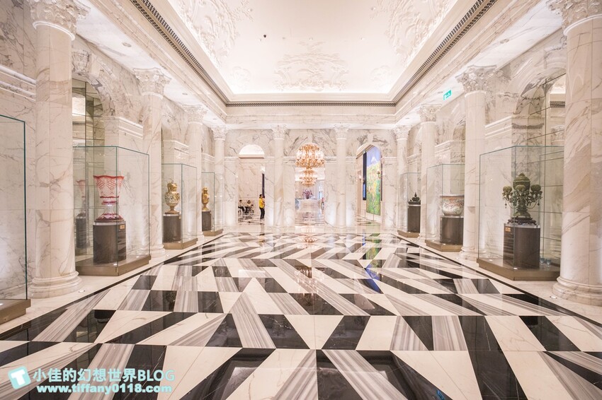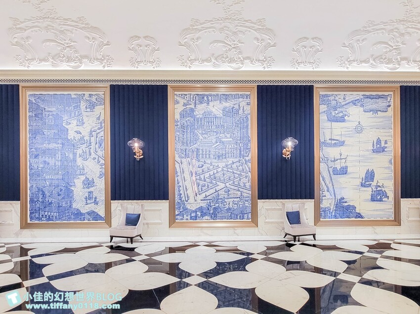 地面的大理石、牆壁上的壁畫、天花板的水晶吊燈、一根根的大理石柱,融合了葡萄牙風情跟現代設計感元素,讓人感受到歷史與現代化的結合。