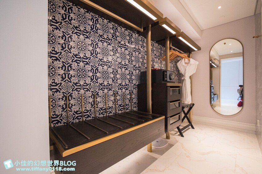 我最喜歡上葡京酒店房間的一個設計就是他有女生夢想中的更衣室空間,而且這個空間非常大,有一面全身鏡跟開放式衣櫃,完全可以在這裡盡情梳妝打扮後再出門。