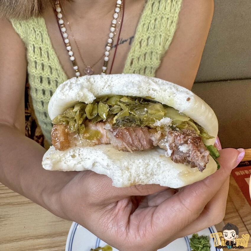 刈包(60元)可以選半肥瘦的控肉,刈包用的就是五花肉,吃起來有嫩帶油脂甘甜,加上福源花生粉、酸菜和香菜,小米沒幾口就解決掉了~