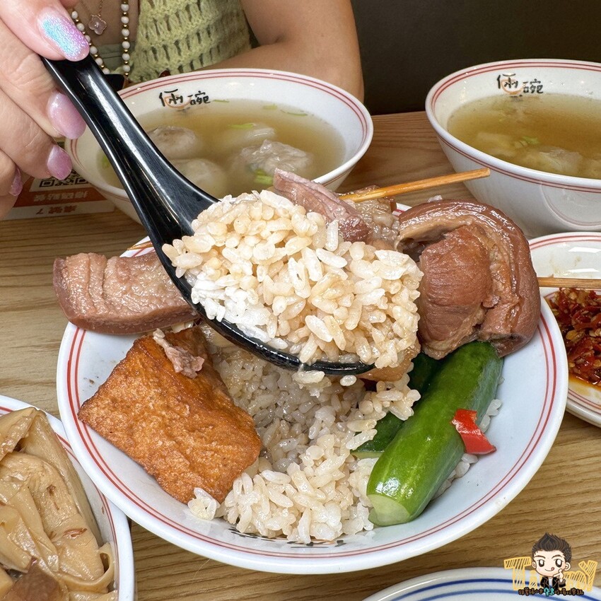 首推控肉飯(85元),可以選瘦、半肥瘦和偏肥的控肉,小米推薦黃金比例半肥瘦控肉,搭配小黃瓜、筍乾和油豆腐。