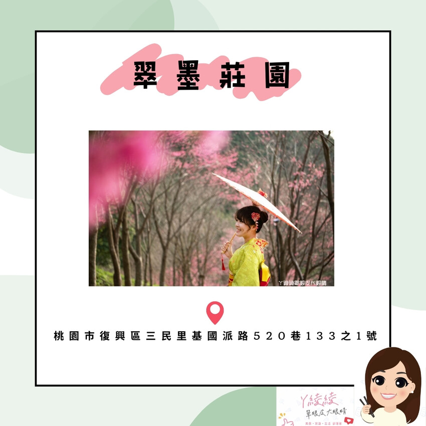 翠墨莊園的櫻花步道是拍照打卡熱門景點!每年春季有限時櫻花季和服浴衣體驗,一起和姊妹閨蜜們來櫻花樹下當網美吧!名額有限,務必提前預約喔!
