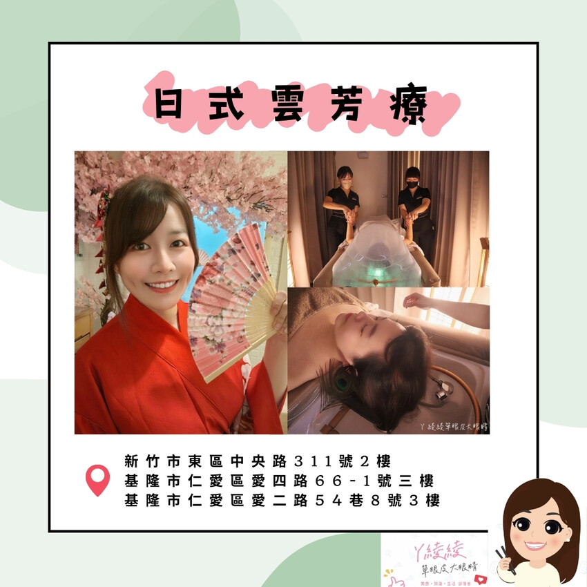 新竹越式洗頭推薦新竹巨城附近的「日式雲芳療」,主打日式按摩深層手法之外,也多了許多女孩們愛美的服務項目,尤其最近新推出的日式舒眠洗頭,沈浸式頭療課程讓ㄚ綾綾深深愛上!最便宜1千多元就能體驗到『精緻專業洗髮+按摩+肌膚保養+身心靈療癒』一條龍的完整服務!重點還有免費和服可以試穿拍照!