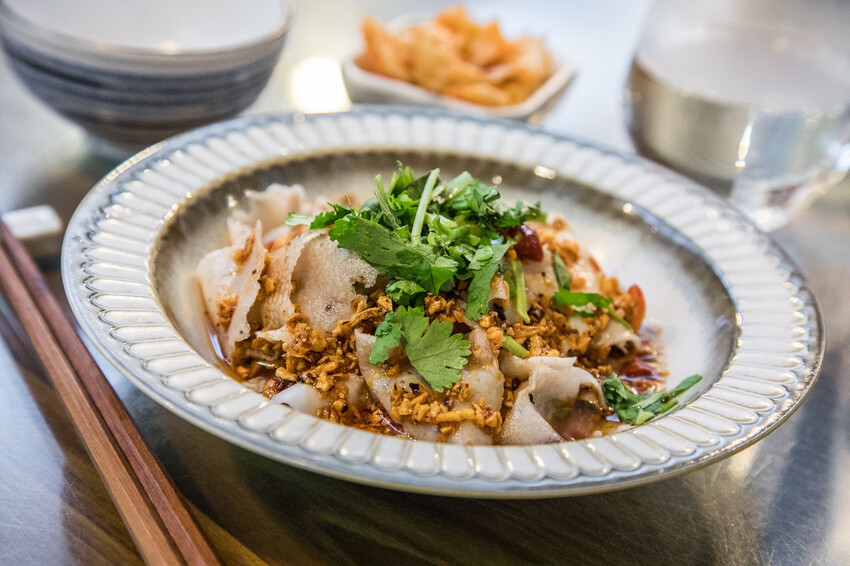 涼拌大薄片,大薄片跟醬料拌在一起很容易入味,調味也不大一樣,風味偏酸小小辣,QQ脆脆加上酸辣口感相當開胃