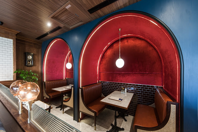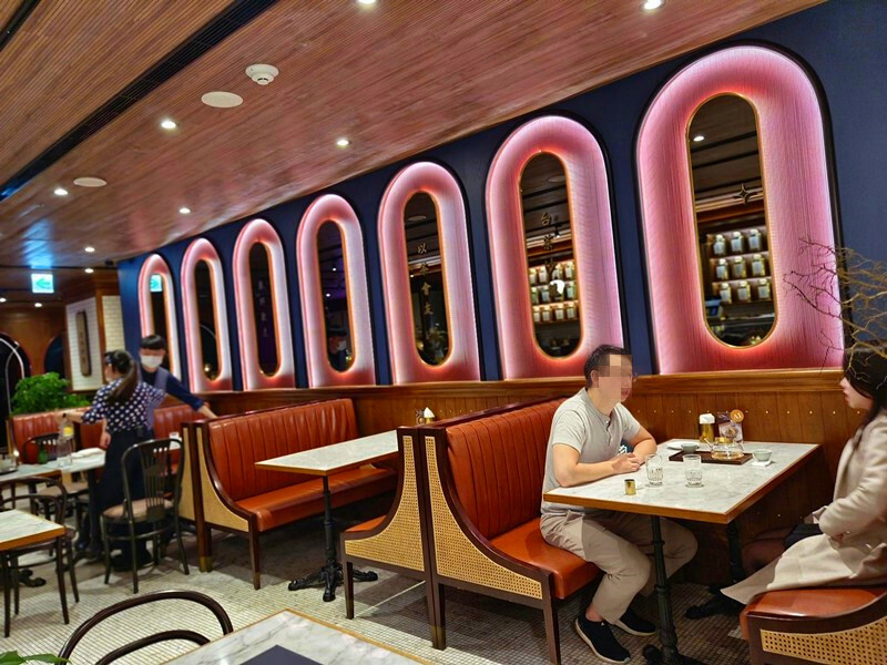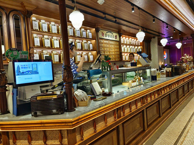 永心鳳茶勤美誠品店連店內裝潢都很美,復古式的卡座,搭配後面對比色系的鏡子,彷彿瞬間來到了電影的場景