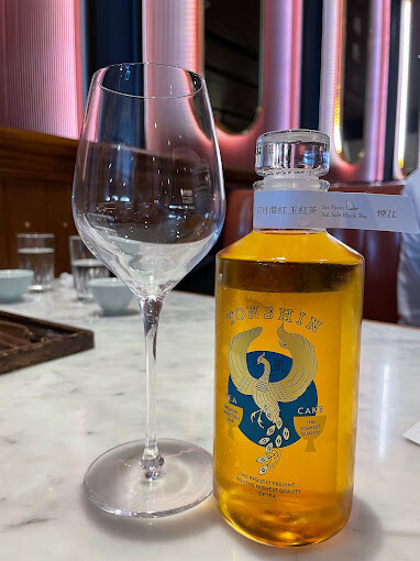 沒想到第一個送上來的日月潭紅玉紅茶$100,就讓大家驚呆了😮!尼侃侃,有哪一家的紅茶這麼美的啦?第一眼看到漂亮的瓶子,還以為他們送了一瓶酒來,結果竟然是紅茶,真是跌破大家的眼鏡!