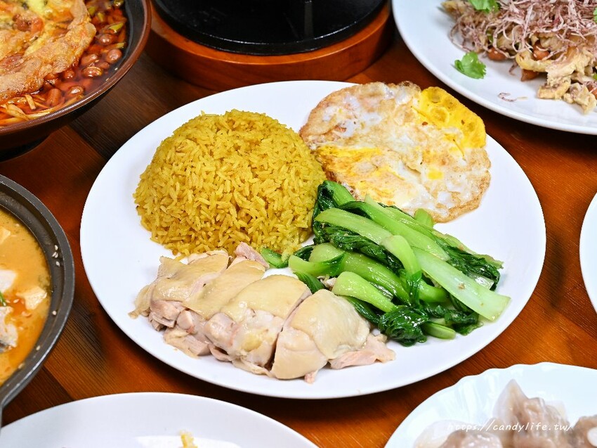 來到贏到鮮水煮魚螺螄粉海南美食私房菜除了可以吃到酸菜魚,還可以吃到海南雞飯,海南雞飯是使用泰國香米,加入薑黃及雞汁下去煮,米飯煮的相當透徹,口感粒粒分明,香氣更加迷人,旁邊還搭配現炒青江菜及荷包蛋