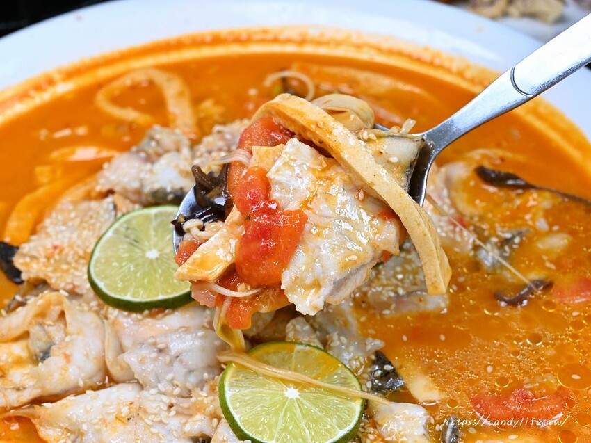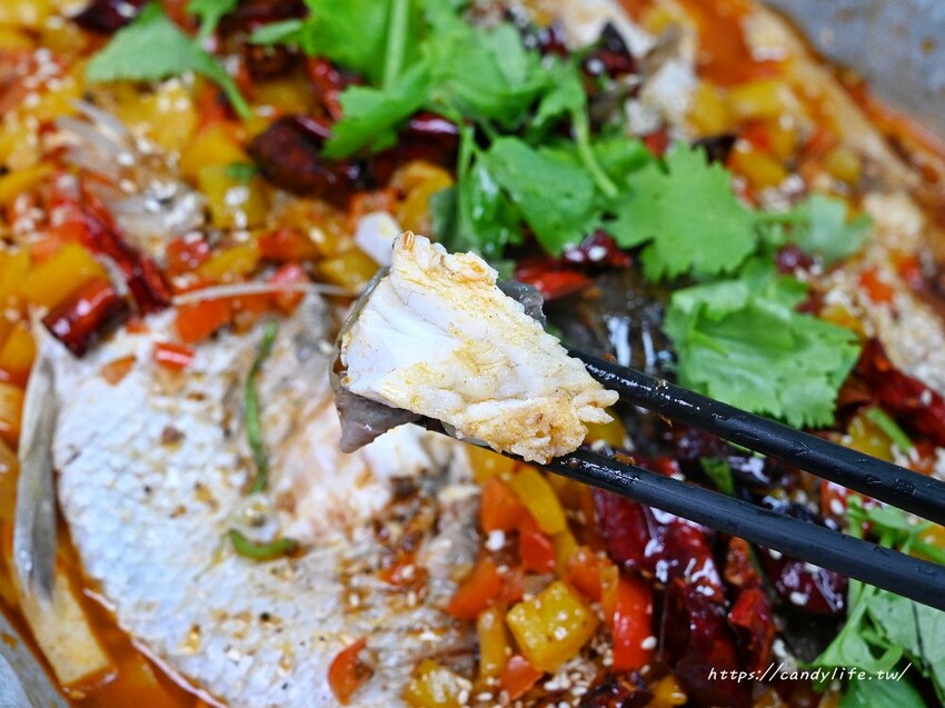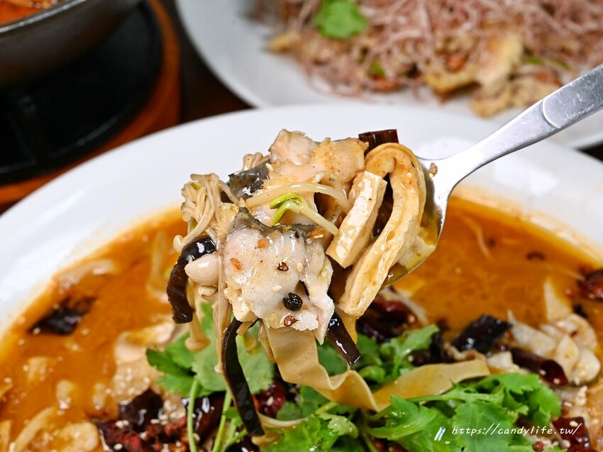 如果是兩到三人,可以點小份一起分食,裡頭採用一整隻新鮮現殺鱸魚,一樣經過手工挑刺,這次湯頭多了乾辣椒、二荊條、花椒及大紅袍下去熬煮,辣度更加提升,香氣更迷人,糖糖點的是小辣,辣度不會太過強烈,平時不辣吃辣的朋友也可以接受