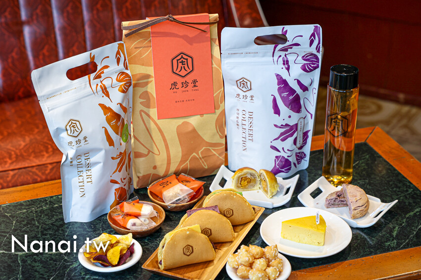 菓寮店一樓有販售伴手禮盒,如虎丸御皇吉、紫薯流心餅、米吉林.地瓜米薯球、糖都禮盒(天長餅禮盒)、呷甜甜 茶糖禮盒、金緻禮盒系列、虎珍寶盒系列、地瓜牛軋糖、紫薯米蛋糕、憨吉濃濃乳酪、天然地瓜脆片、法式珍珠泡芙..等,通通買的到,產品多元又獨特,是台灣唯一地瓜糕點專賣店,很多老饕都稱它地瓜甜點界霸主。