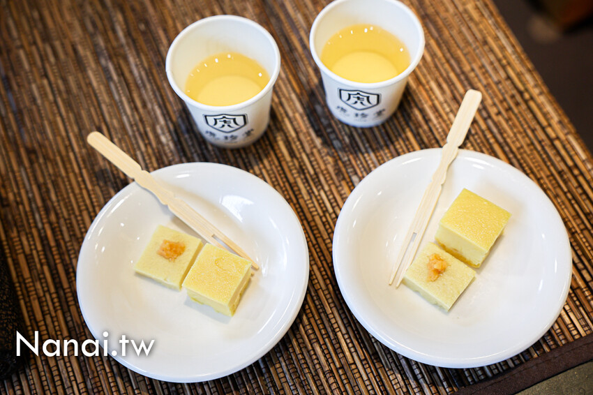 熱情店員遞上熱茶和憨吉濃濃乳酪、蜜薯厚布蕾請我們試吃,一入口就感受到綿密化口質地,以及淡雅地瓜香慢慢滑入喉嚨,這味道我好喜歡啊!