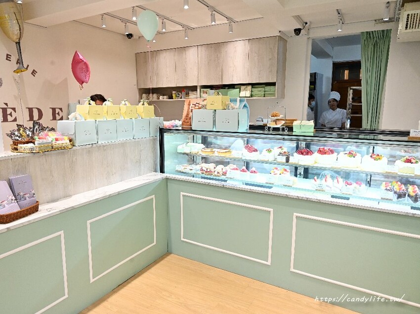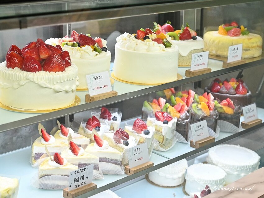 糖糖是第一天試營運就來了,下午兩點多來品項非常齊全,甜點櫃上陳列著各式各樣的蛋糕甜點,蛋糕有4吋到12吋,也有切片蛋糕,還有草莓泡芙、1974烤起司蛋糕、mini起司等