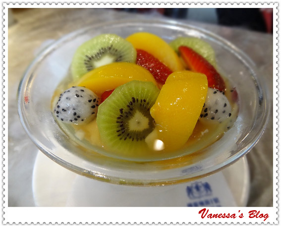 口感比較像傳統的綿密豆花,搭配著水果的酸甜及糖水恰到好處~~整碗還蠻有飽足感的(適合2人分享)