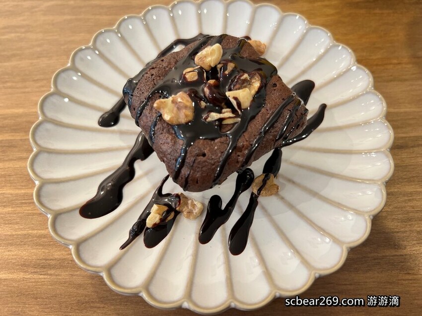 布朗尼上同樣也有堅果和巧克力淋醬可搭配著一起吃
