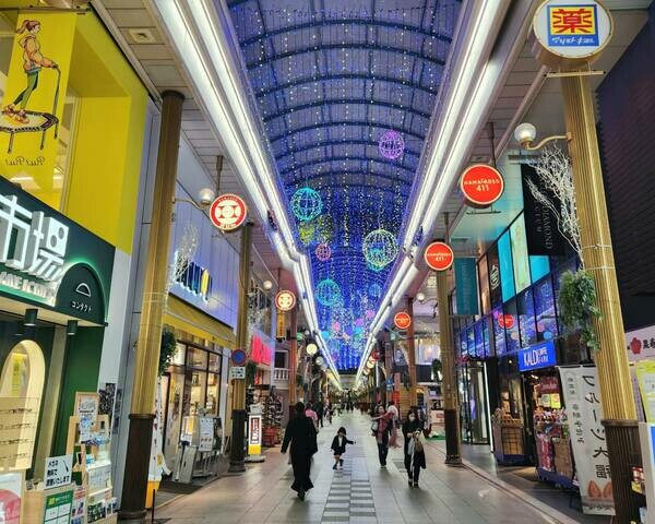 長崎觀光通商店街位於中島川旁,是長崎市最主要、最熱鬧的商業街,也是最好逛的購物一條街,匯集了眾多美妝店、服飾連鎖店和各種餐廳。建議可以將這裡當成自由行最後一天的其中一站,在這裡可以買到長崎前四大名店的長崎蛋糕、補齊藥妝和各種伴手禮。