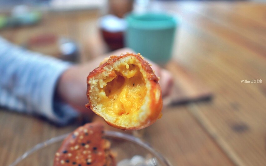 還有雞蛋燒,外脆內有滿滿鹹蛋南瓜卡士達,好酷。