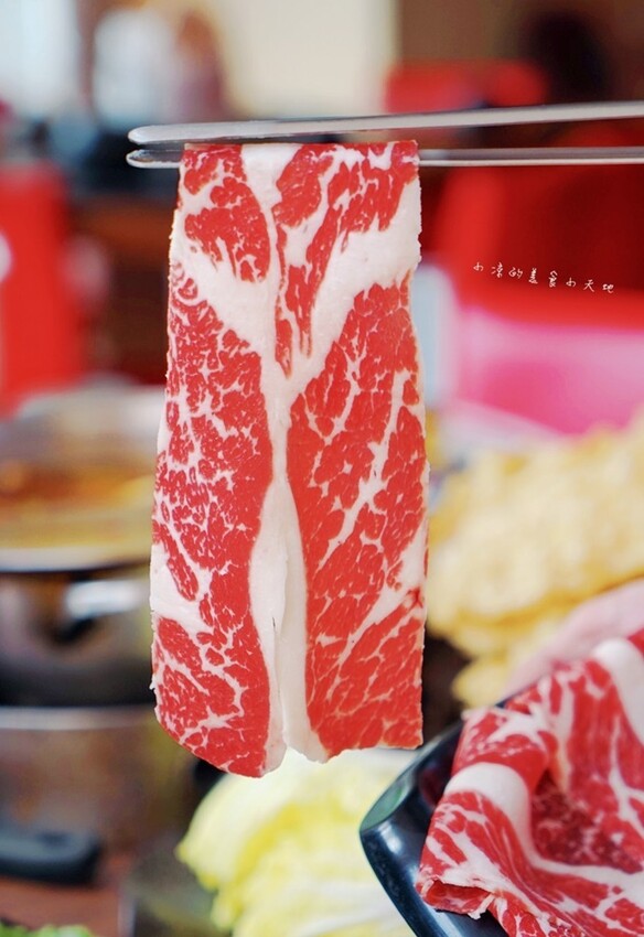 牛肉切的大塊又不薄,直接涮麻辣湯頭真的很適合,記得不需要涮太久太柴也不好吃唷!