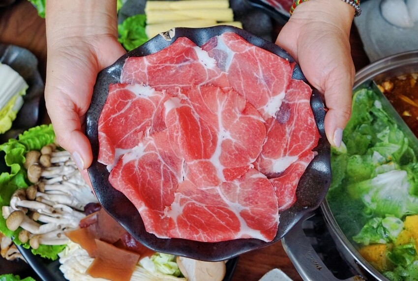 梅花豬肉很適合在高纖蔬菜鍋內燙熟,這肉片帶點厚度,吃起來厚實又柔嫩,多了蔬菜的獨特香氣,吃起更美味!!