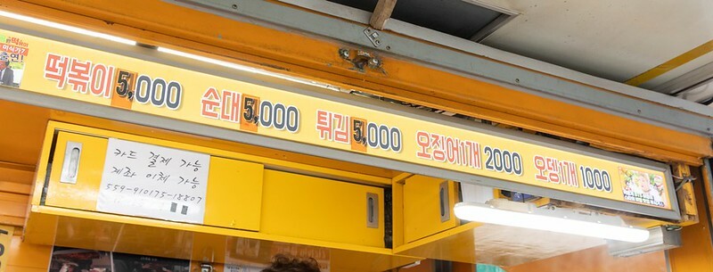 這裡賣的食物比想像中多了一些,主要是四大類辣炒年糕5,000韓幣,炸物5,000韓幣,血腸5,000韓幣,魚糕2,000韓幣(串)。