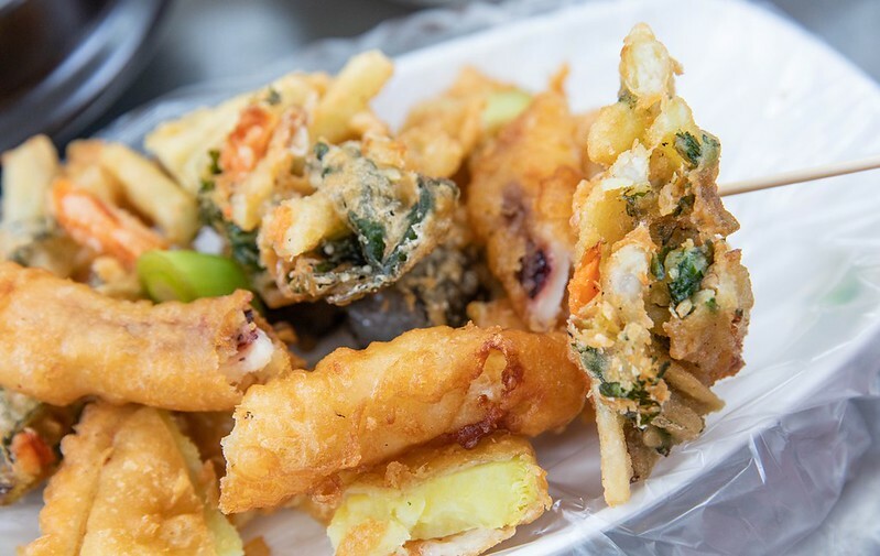 相對辣炒年糕,也許我更喜歡大姐的炸物,除了五郎也有點的海苔捲冬粉、花枝外,大姐多放了一份炸蝦。