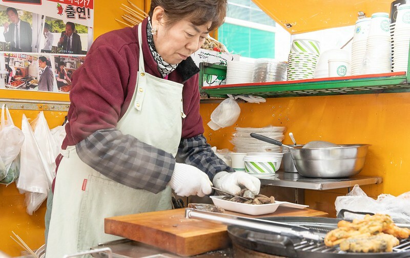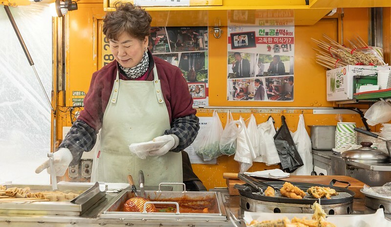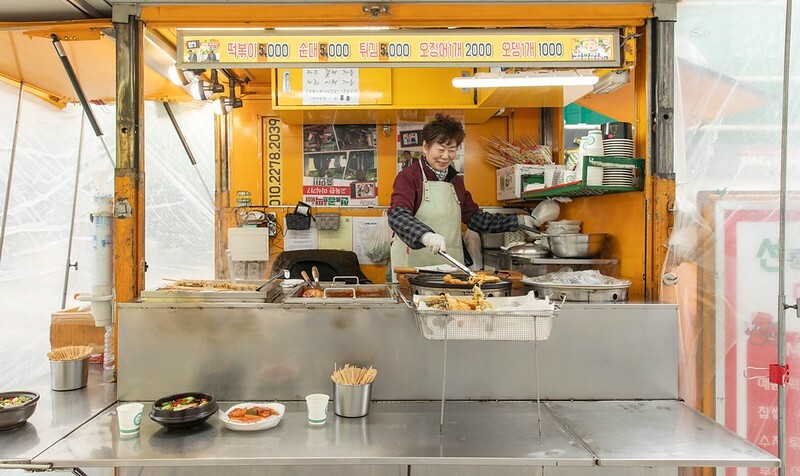 白色的餐車也略有不同,但同樣是韓國隨處可見的立食餐車,賣得多半是辣炒年糕、韓式炸物、烤物等等。