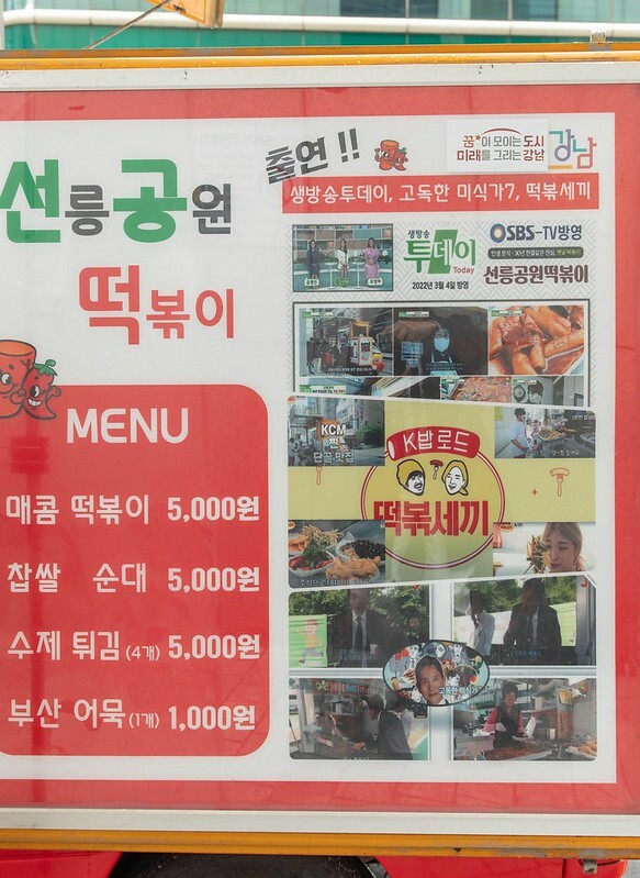 宣陵公園辣炒年糕(선릉공원떡볶이.Tteokbokki and Oden):172-90 Samseong-dong, Gangnam District, Seoul南韓(2號捷運宣陵站步行5分鐘),電話:+821022782039營業時間:14:00-22:00(星期六日休)