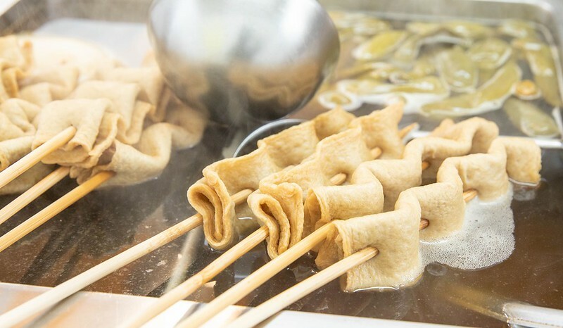 如果覺得辣,可以搭配關東煮的湯(免費),不管這關東煮的湯可能是煮了辣椒(有一點像咱們的剝皮辣椒),喝起來也是有一點微辣,但相對來說甜度是比較明顯且討喜的...問大家有沒有賣飲料或是酒,她頭也不回的指了指後面的便利商店(笑)。想想整個場景和過程,都很像我在大阪同樣追隨五郎吃步的「串かつ・どて焼 武田」。