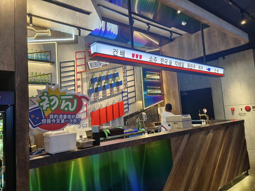 初瓦的裝潢與其說是餐廳,不如說更像夜店,外面的入口處就一堆鮮豔的配色,走進來後還有各色霓虹燈管,看起來非常走在時尚的尖端