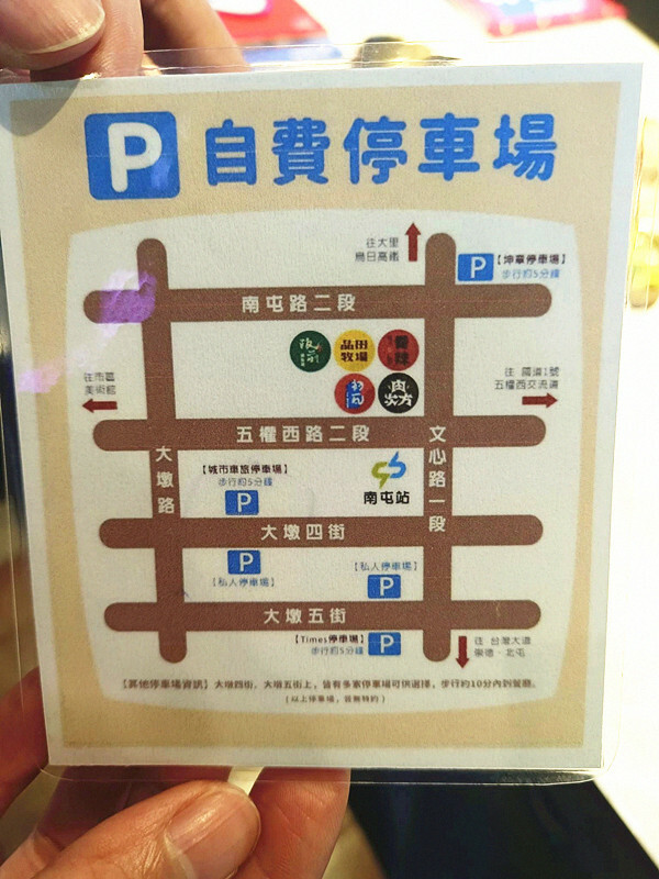 由於我們第一次來,不知道附近哪有停車場,問了店員才很熱心地拿這張自費停車場地圖給我們看,原來周遭停車場還不少,但都要付費就是,初瓦並沒有特約停車場