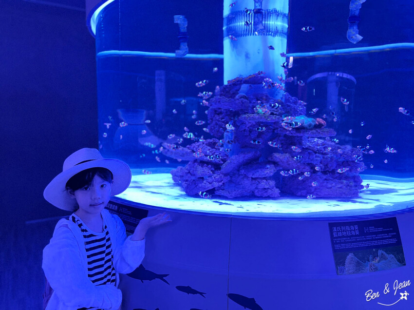 其中有一個水族箱很特別還搭配智慧水族導覽系統,其它飼養熊貓小丑魚以及獅子魚和魨魚