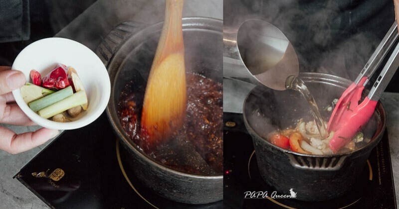 石頭鍋爆香瞬間..好太炸裂!噴發的香氣/招牌石頭鍋 $75 /爆炒川府麻辣湯 $95(鍋底費)