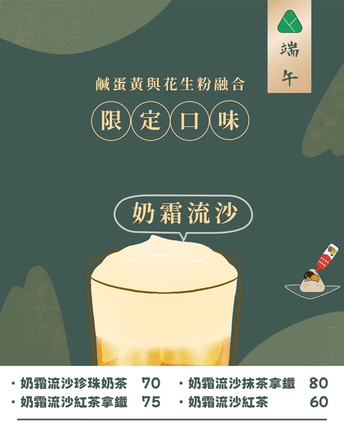 因應端午節,還推出鹹蛋黃與花生粉融合的限定口味-奶霜流沙~