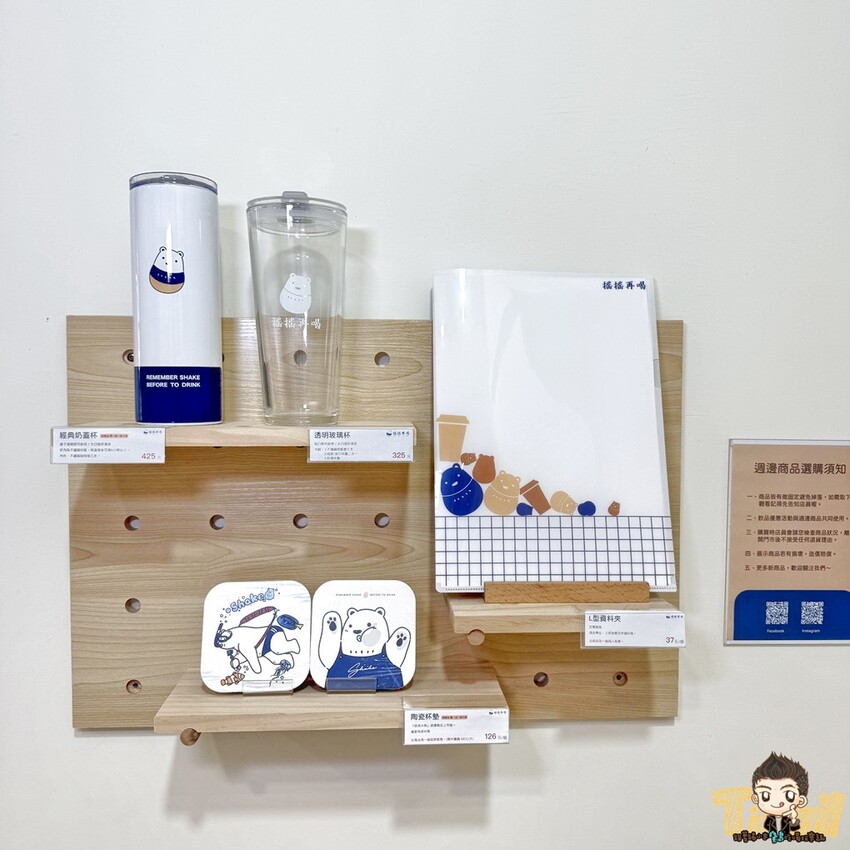 經營多年,陸續推出多款周邊商品,有L型資料夾、透明玻璃杯、奶蓋杯,還有可愛的杯墊耶!