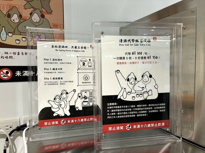 投幣式清酒機代幣一枚$100元,選好酒款確認代幣數量後,至櫃檯購買代幣、領取杯子,杯子放在出酒口,投入代幣數量、按下開關,即可輕鬆開喝啦🍹(提醒:未滿十八歲禁止飲酒)