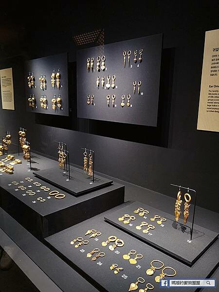 慶州博物館的主場館內展示了新羅時期金觀塚和天馬塚所出土的文物為主,像是王公貴族所穿戴的皇冠、飾品等等,多數都是以黃金打造,因此一眼望去都是金光閃閃。