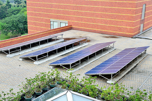 這可是先進的20.16kwp太陽能發電系統,發電量都透過即時連線傳送至一樓大廳電視牆