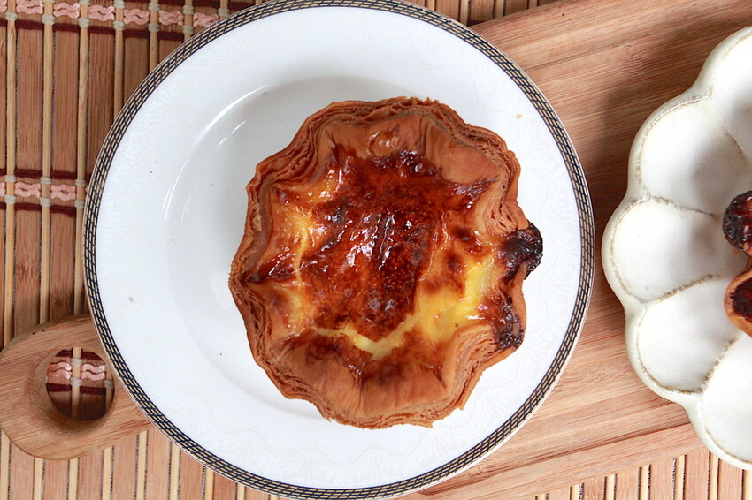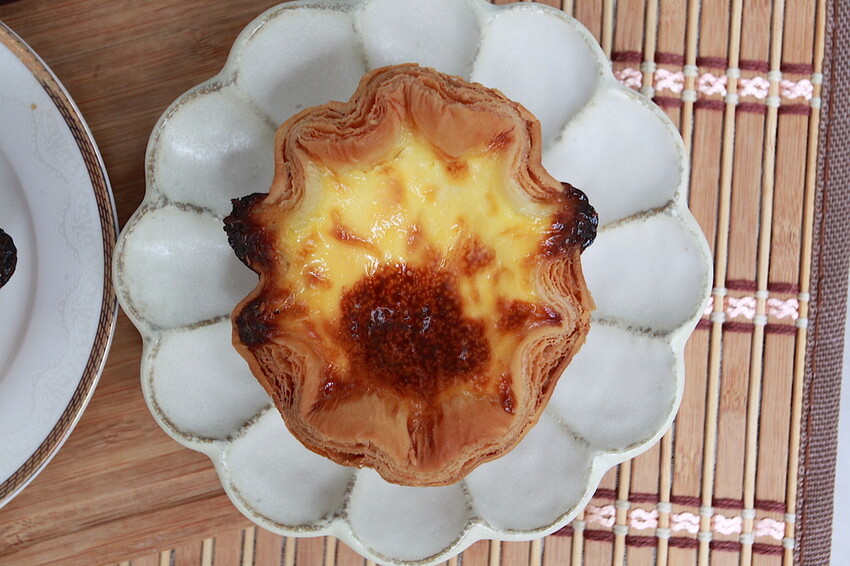 下圖是莎士比亞花邊千層蛋塔照片,與上圖照片做比較就可看出之間差異,莎士比亞花蛋塔整體內餡更濃郁更好吃