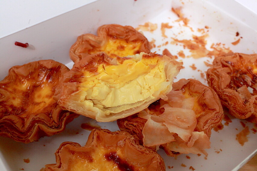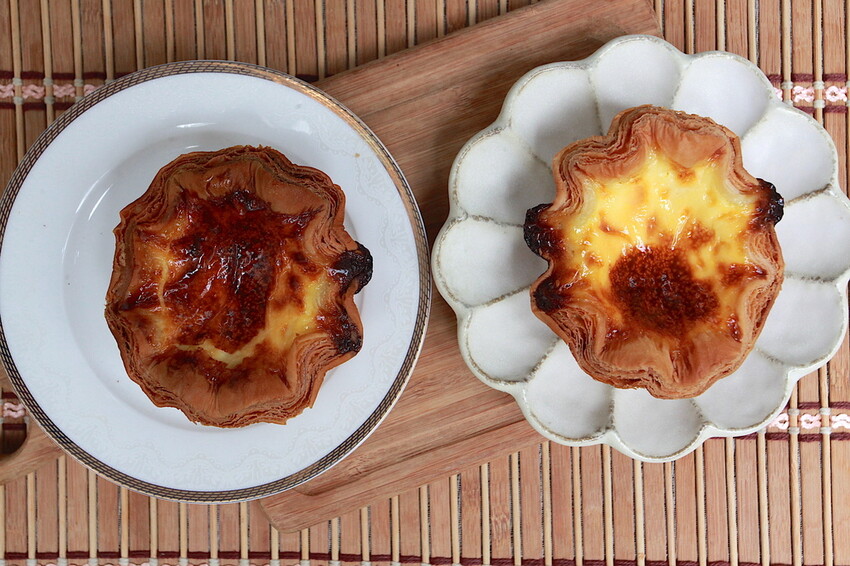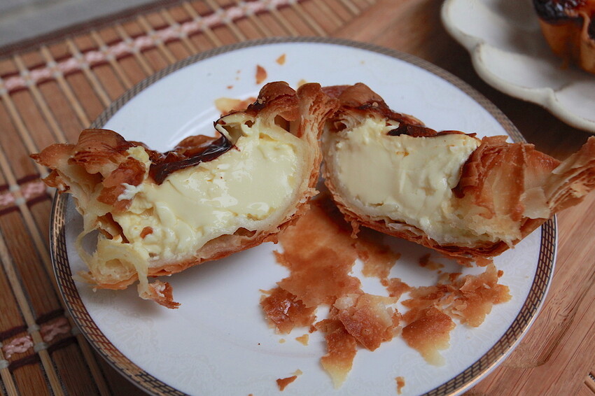 從外觀莎士比亞的蛋塔塔皮層數比較多層,千層蛋塔因塔皮很費工才賣這麼貴。