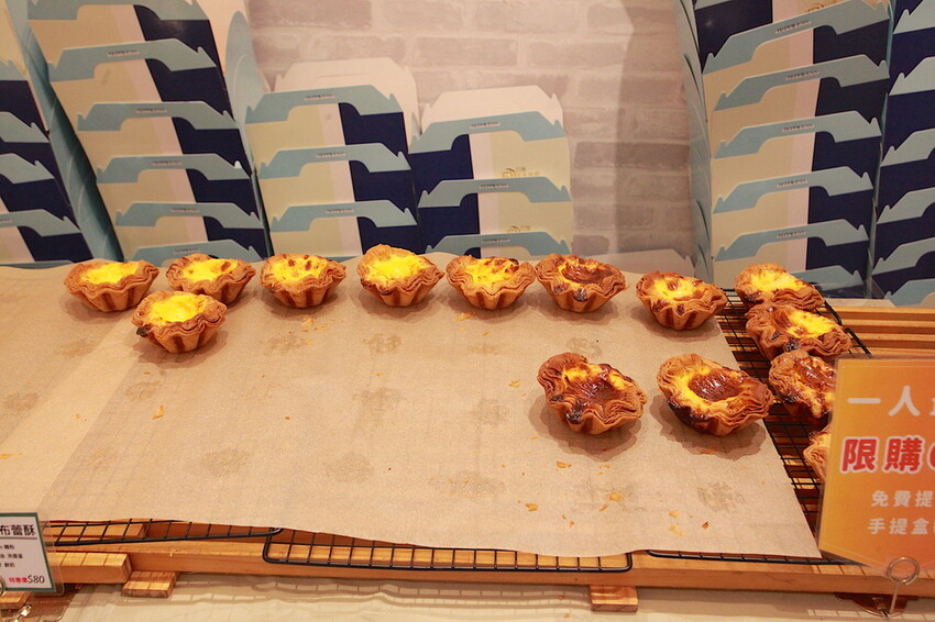 剛剛出爐千層蛋塔就放置店內右方檯面,目前門市每人限購6入就是一盒,店家臉書有詳細資訊敬請自行觀看。