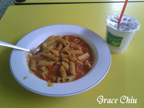 某天回家發現老弟外帶了一份筆管義大利麵&沙拉(千島醬)回來給我,雖然已經放到冷掉味道還是很不錯,筆管麵也很Q彈,一份裝在紙碗的35元沙拉份量也很實在~老弟說是在貴陽街與西昌街口的萬佳鄉買的,萬佳鄉不是賣早餐的嗎?老弟說接近中午有開始賣義大利麵.