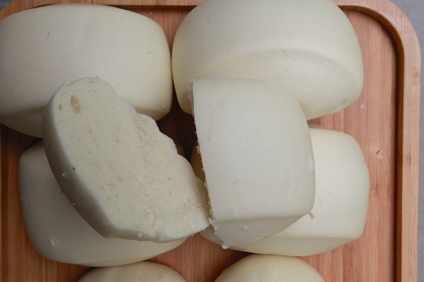 小高發現肉包跟饅頭尺寸偏小ㄧ些,小高拿刀切之時,就覺得不是使用老麵麵糰製作的包子。